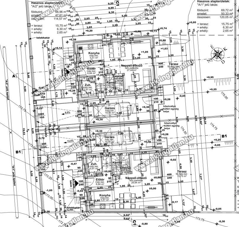 Az 1200 nm-es telekre két ikerház épül.