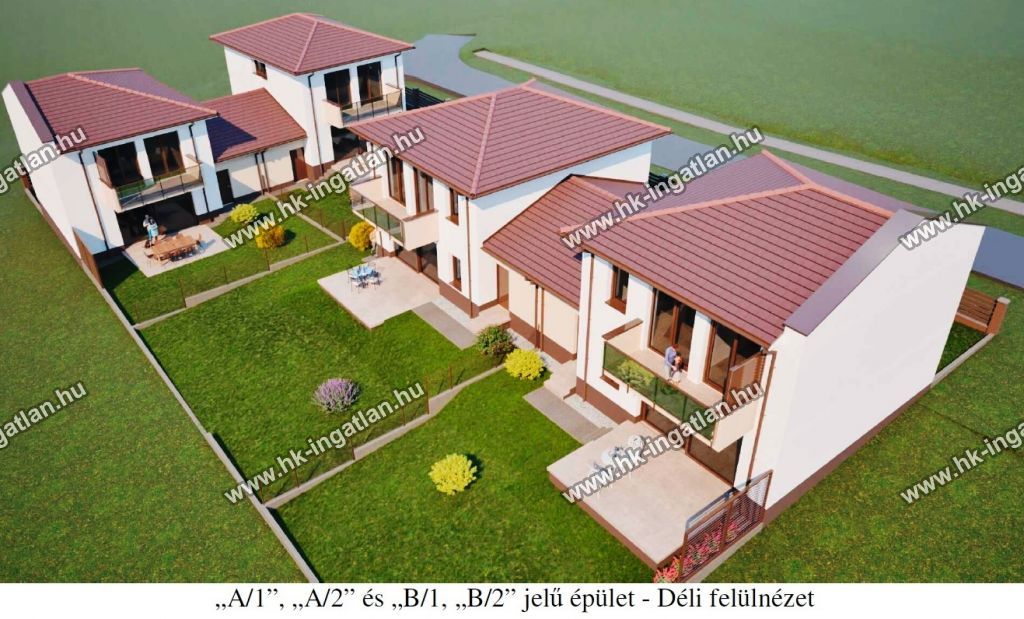 Jelen hirdetésben az A épület 1-es lakása szerepel, mely hasznos lakóterülete a garázzsal 120,05 nm + terasz + erkélyek, amerikai-konyhás nappali + 3 szobás, dupla-komfortos, kb. 400 nm-es telekrésszel.
