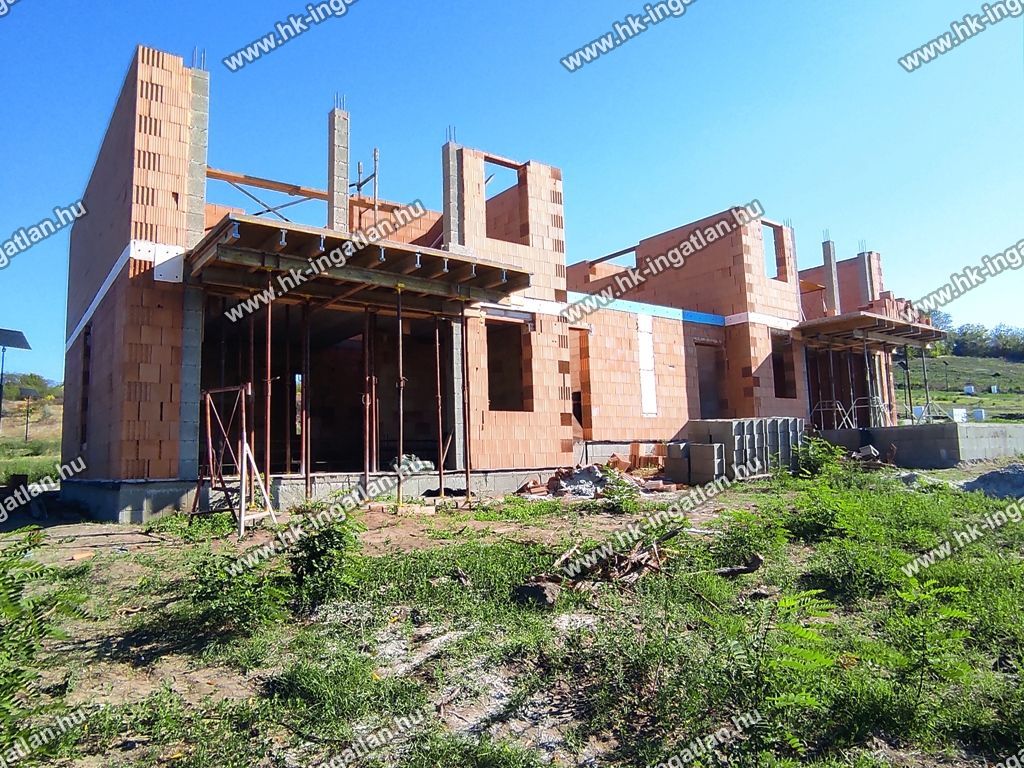 A főfalak Porotherm 30 N+F téglából épülnek, a válaszfalak pedig Porotherm 10 N+F téglából, 15 cm-es homlokzati szigeteléssel.