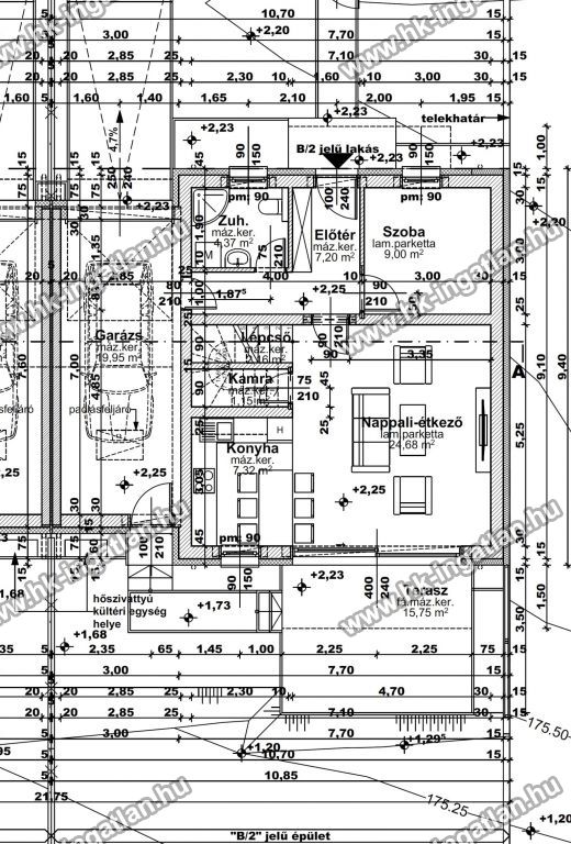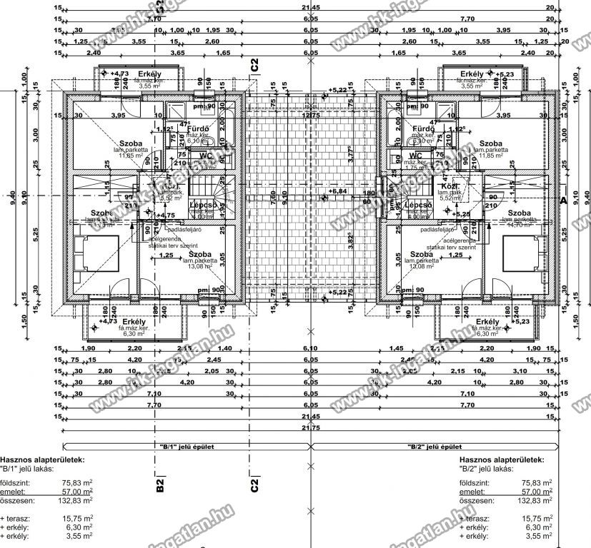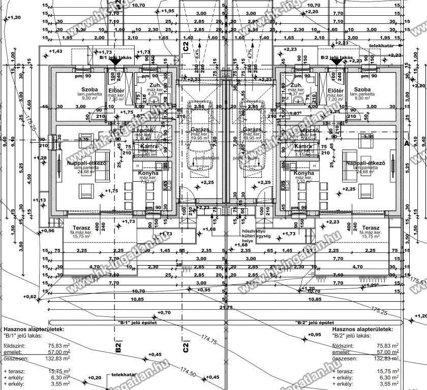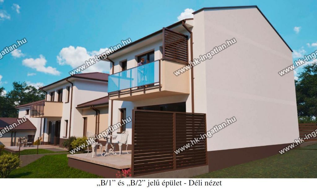 Jelen hirdetésben az B épület 1-es és 2-es lakása szerepel, mely hasznos lakóterülete a garázzsal 132,83 nm + terasz + erkélyek, amerikai-konyhás nappali + 4 szobás, dupla-komfortos, kb. 400 nm-es telekrésszel.