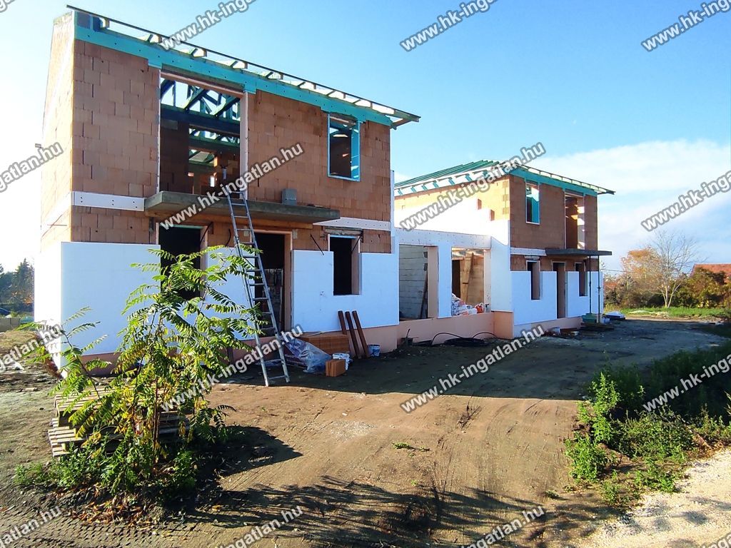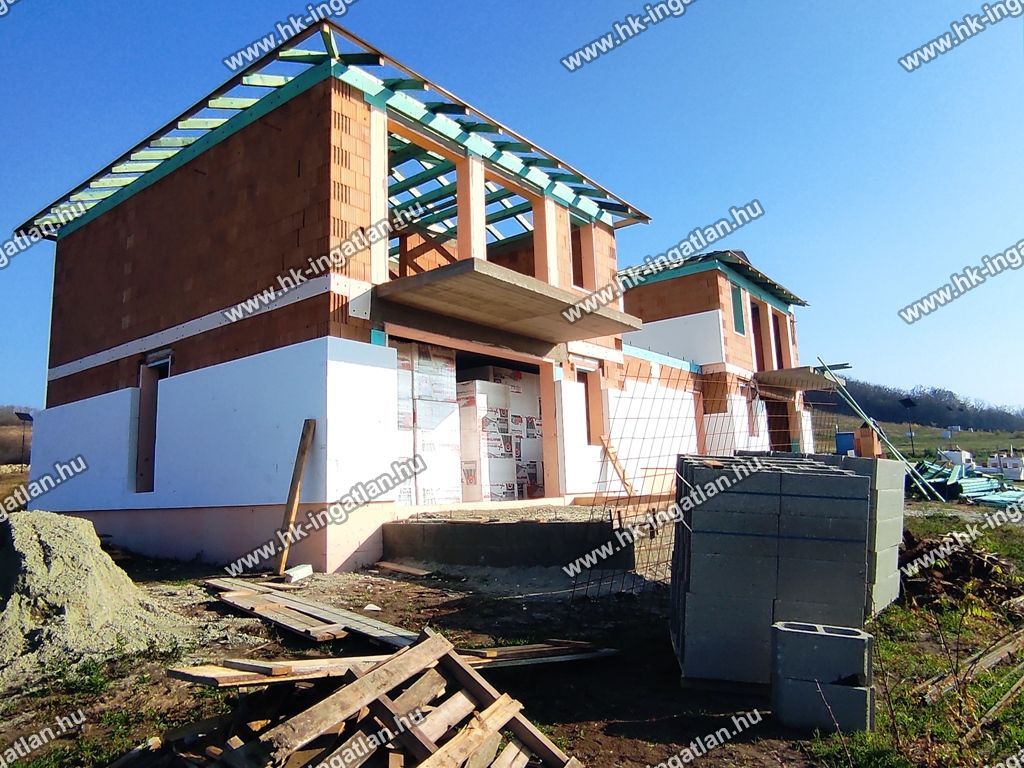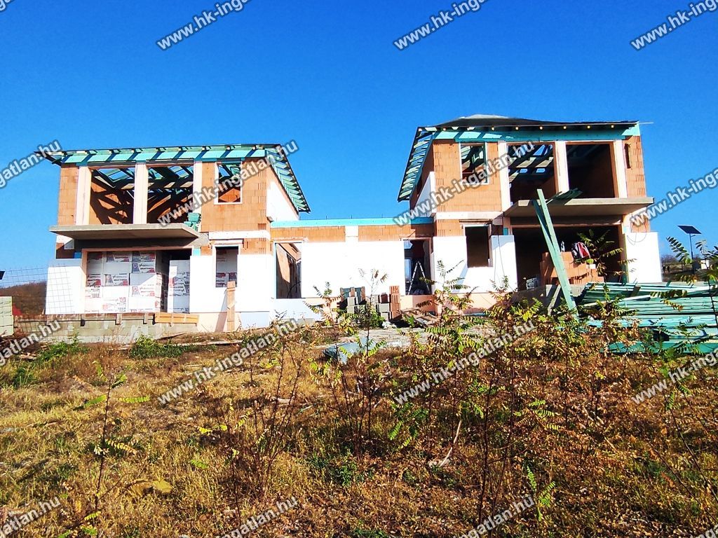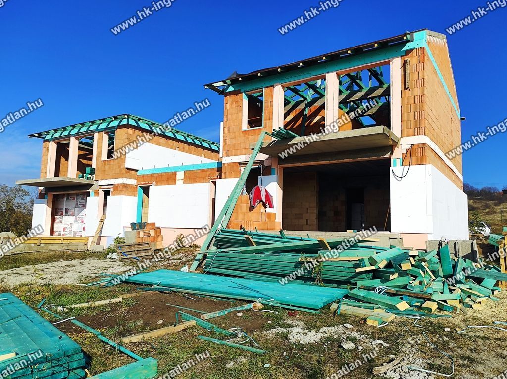 Az épülő házról készült képek, a projekt másik ikerházát mutatják be.