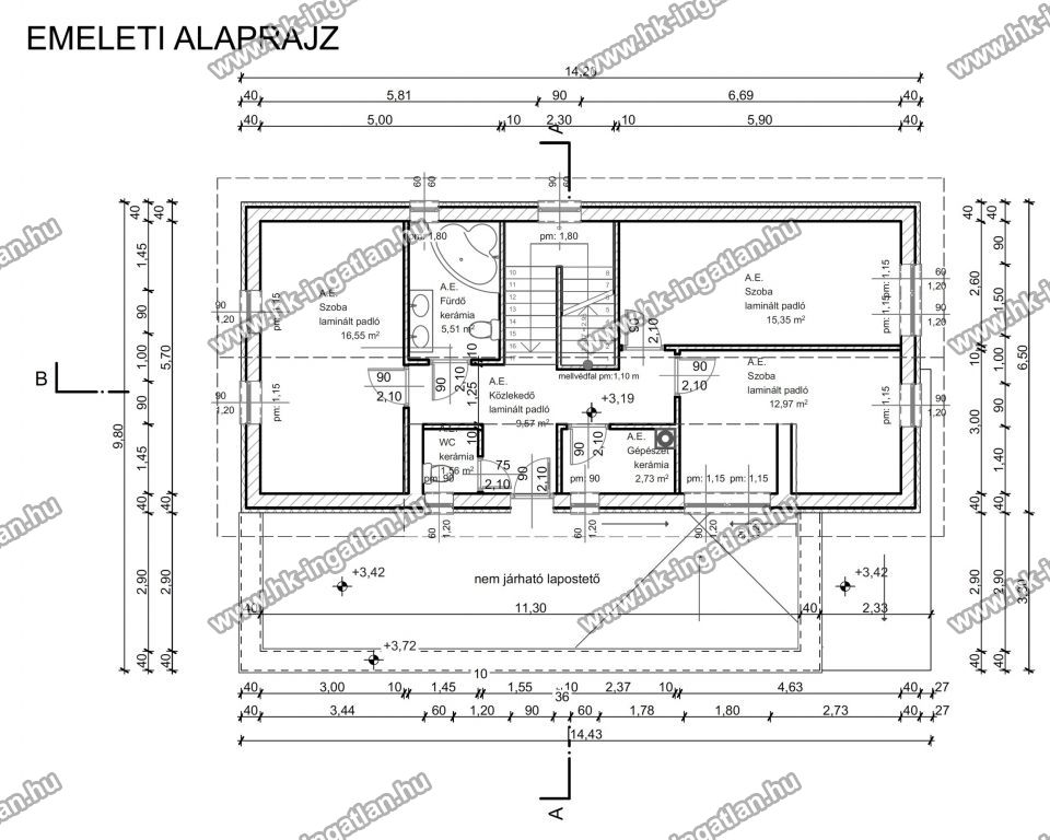 Az emelet 64,24 nm, ahol 3 szoba, egy fürdő, egy külön WC, valamint egy gépészeti helyiség található, ami mosókonyhaként is funkcionálhat.