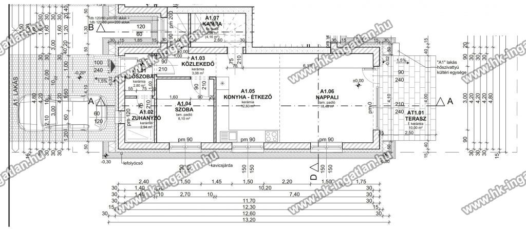 Parkolás: a telken belül, térkővel burkolt beállón kerül kialakításra.