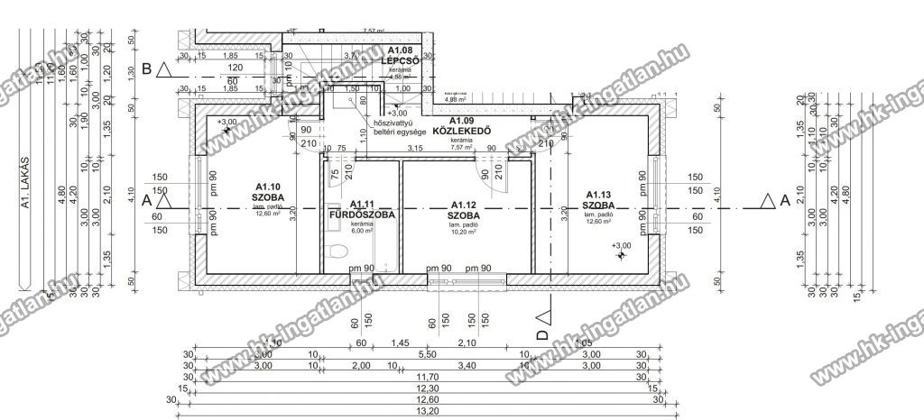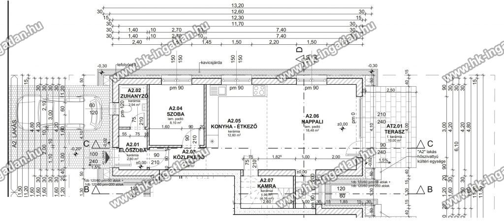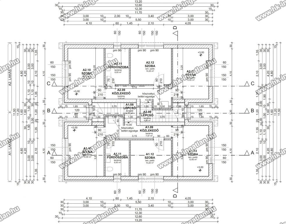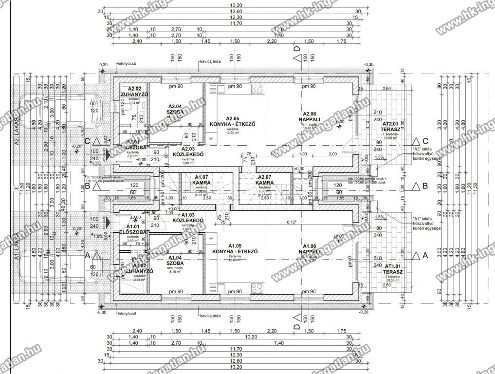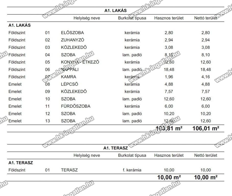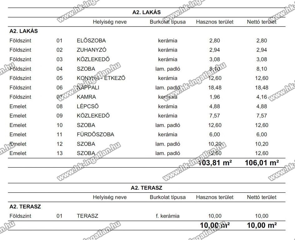 Az 569 nm-es telekre épülő ház két lakása belső elrendezésében megegyezik: amerikai-konyhás nappali + 4 szobás, dupla-komfortos, zárt udvari gépkocsi beállóval és 285 nm-es kizárólagos telekrészekkel rendelkezik. A lakóterületük 106 nm + 10 nm terasz.